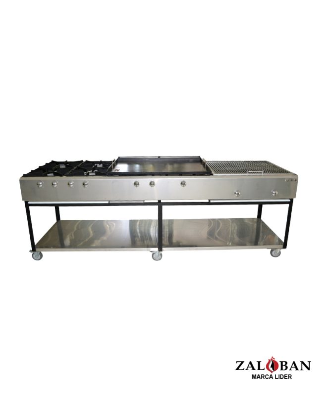 Estufa De 4 Quemadores Plancha De 15″ Con 1 Freidora Tipo Perol.