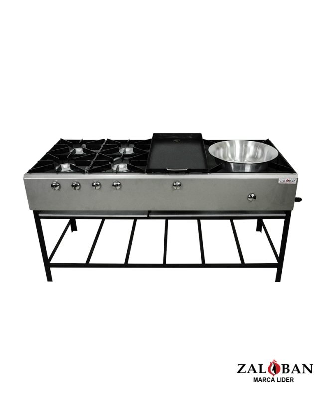 Estufa De 4 Quemadores, Plancha De 15″, Freidora Tipo Perol