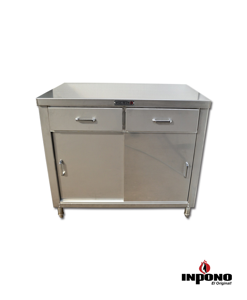 Mueble De Trabajo Fabricado En Acero Inoxidable, De 2 Puertas Corredizas Y 2 Gavetas.