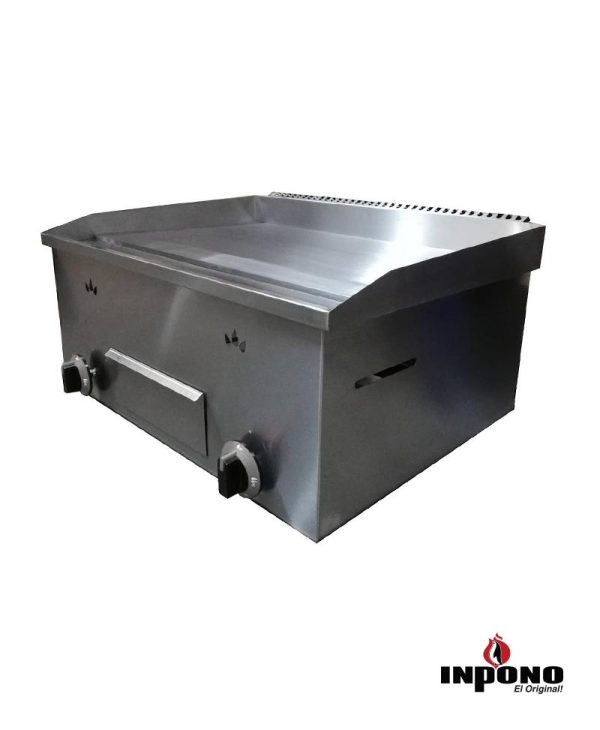 Plancha marca Cookrite, de alto rendimiento. Flujo calorífico de 30,000 Btu por quemador. Válvulas Taiwan Alphas Brass con piloto de encendido. Incluye bandeja recolectora de líquidos y niveladores de altura ajustables.